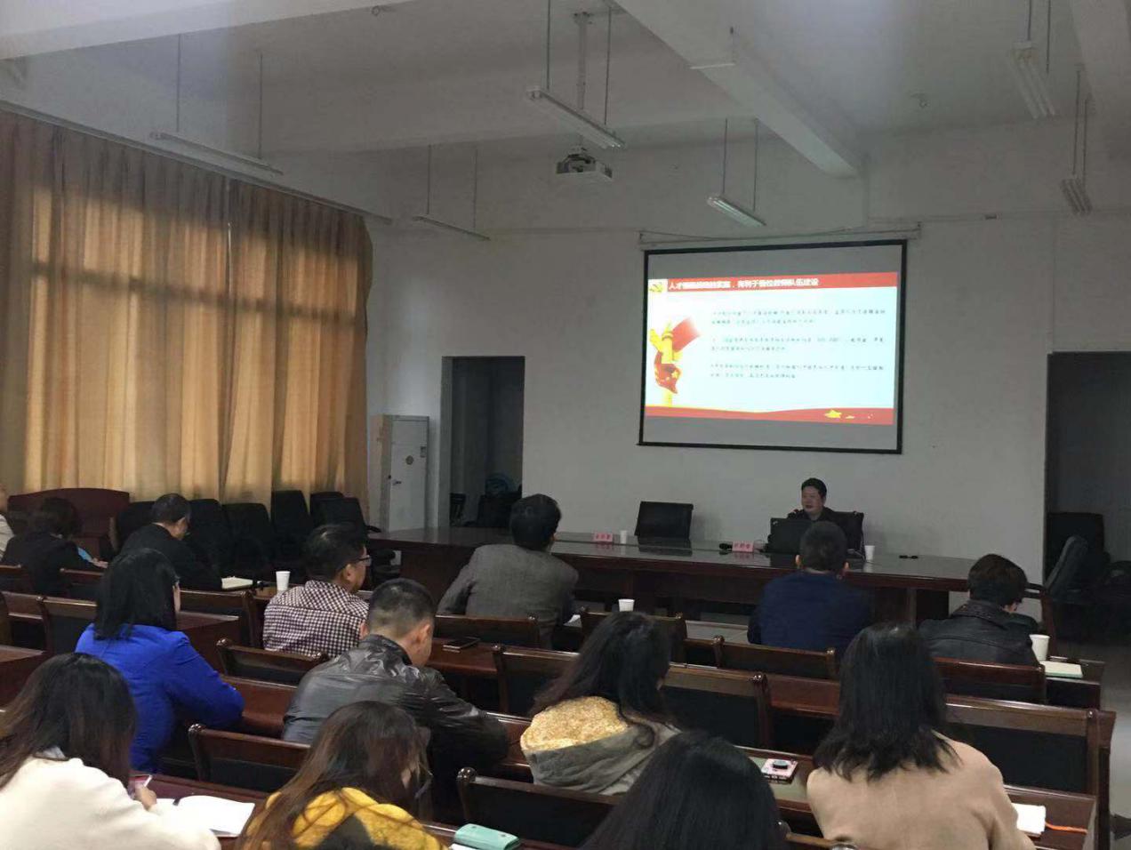 12月5日下午,公司党委在william威廉中文官网学术报告厅举办习近平新时代中国特色社会主义思想和党的十九大精神第三轮宣讲报告会,邀请公司党委讲师团成员、校人事处处长、教师工作部部长卓朝春作题为《不忘初心牢记使命扎实做好公司人才工作》的专题辅导报告。报告会由经理俞昌喜主持,公司党委理论学习中心组成员和各学系、中心、办公室教职员工118人聆听了报告。