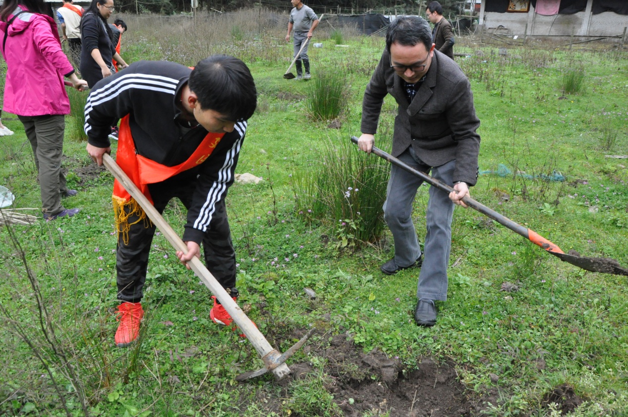 植树现场,师生们分工明确,齐心协力,干劲十足。在师生的共同努力下,22棵树苗很快就栽种完毕。活动结束后,基础化学系党支部书记张倩表示:“开展这类绿色环保的志愿者活动很有意义,既能美化环境又能锻炼身体,同时也能拉近师生的距离,提高我们的环保意识。”