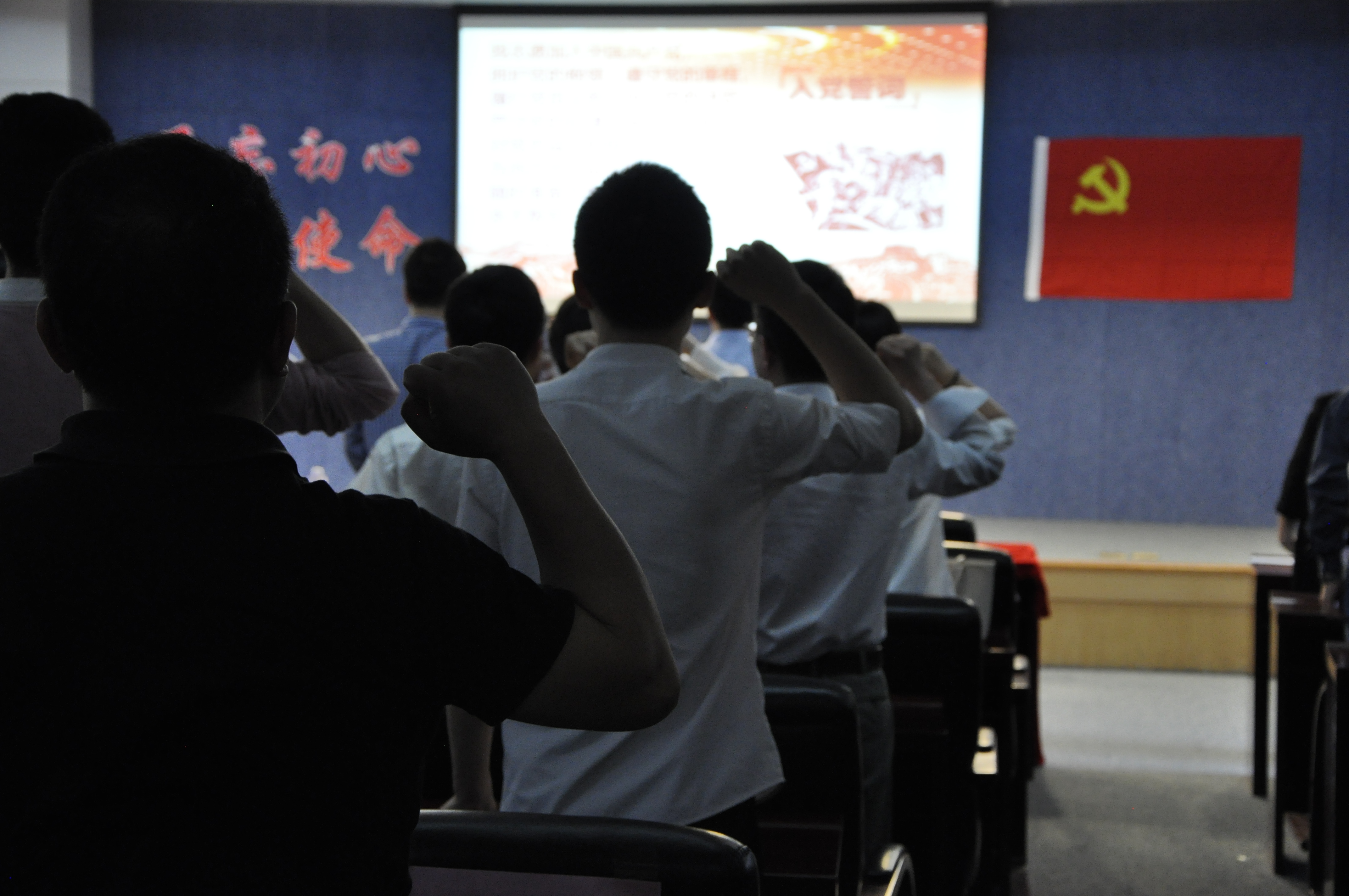 诵读会共有三个环节。在第一个环节,各师生党支部逐一上台诵读红色经典篇目。一支支队伍声情并茂,满怀激情,或诵读祖国繁荣强盛,或歌颂党旗飘扬夺目,亦或是朗诵万里长征艰难险阻,缅怀革命烈士先辈。第二个环节,党委书记余祥彬上台为大家上了一堂党课,对公司党建工作面临的形势进行分析,勉励全体党员要“不忘初心、牢记使命”,并就2019年william威廉中文官网基层党建重点工作进行部署。最后,现场全体党员在余祥彬书记的带领下,重温入党誓词,引导党员坚定理想信念。