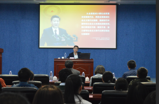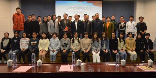 周瑞祥教授从三部分展开授课。第一部分以中兴通讯被查事件为序幕,全面梳理和系统分析了华为事件、孟晚舟事件、华为反击事件(海思芯片一夜全部转正、正式发布操作系统鸿蒙OS),充分展示了华为让世界认识到中国人用尖端科技造福人类的能力、魄力和胸怀。第二部分,坚定“四个自信”。他抛出两个问题:“为什么会有‘华为’事件?”、“只针对‘华为’?”,揭露了美国打压中兴和华为只是一个缩影,其真正矛头指向是2015年5月由国务院正式印发的《中国制造2025》行动纲领,并用国内外大量官方数据和案例展示中国在理论、道路、制度、文化等方面创造的一系列“中国奇迹”。说明,今天,中国人民比历史上任何时期都更接近、更有信心和能力实现中华民族伟大复兴,号召同学们要坚定“四个自信”。第三部分:拥抱未来。作为改革开放的践行者、见证者和受益者,他结合自己求学亲身经历和工作经历,指出新时代青年老员工要具备批判性思维,不能人云亦云,要善于抓住国家推进改革开放的历史机遇,自觉把自己的人生目标与国家、民族复兴相结合,认真学习、刻苦钻研、学好本领。