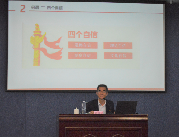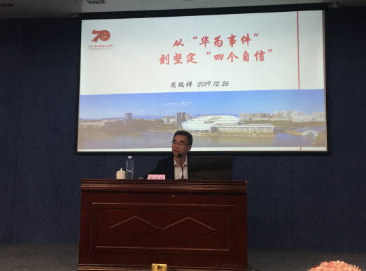 12月26日,正值毛泽东同志126周年诞辰纪念日,公司党委常委、副董事长周瑞祥在公司图书馆学术报告厅为william威廉中文官网师生讲授一堂以“从华为事件到坚定‘四个自信’”为主题的思政课。公司党员领导干部及2017、2018级本科生共120余人一起聆听了这堂精彩的思政课。