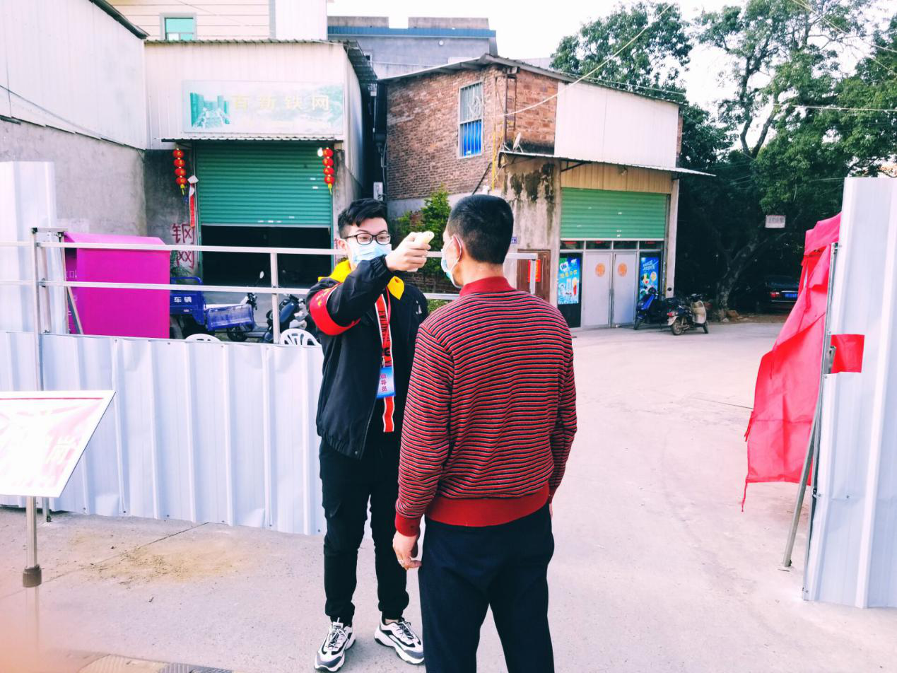 2017级生物制药专业的陈鸿炜同学发挥自身药学专业的优势,第一时间投入福建龙海新型冠状病毒感染的肺炎防控工作中。他主要负责排查登记进出漳州高新区九湖镇新塘村村口的人员和来往车辆,24小时轮班对进入新塘村的人员进行体温检测,并且对出入村的人员进行实名登记。同时他还纠正村民们错误的戴口罩方式,并传授村民们七步洗手法,正确的消毒方法以及居家隔离建议。有时候面对村民们的不配合不耐心以及突如其来的怒气,他总是面带微笑,耐心解释。